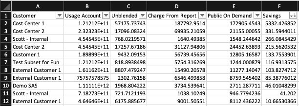 - The sum of savings associated with accounts not included in the report will appear as a row with the AccountID as 'Other'.