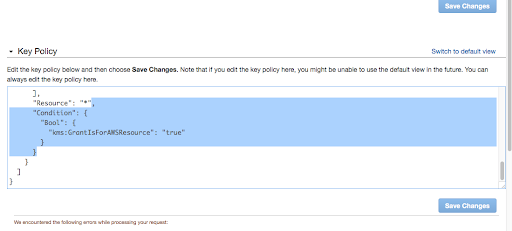 3. Switch to policy view inside the key properties, and remove the following condition, save the changes.