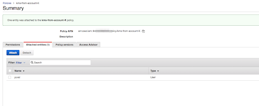 Create a policy in account actInst, inserting the following JSON. Make sure to change the Key ARN:
