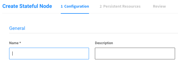 The creation of a Stateful Node requires at least one of the following persistence options to be selected: Root, Data, or Private IP.