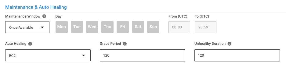 • Auto Healing will perform replacements of nodes deemed unhealthy according to the selected health check type.